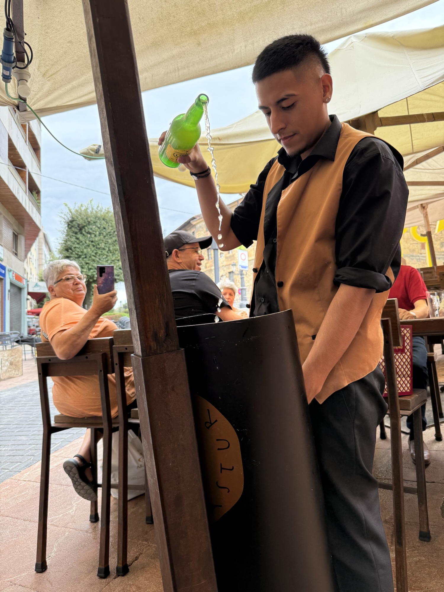 Jetzt suchen wir uns etwas leckeres zu essen und trinken den Sidra, der hier in Oviedo ja das Kultgetränk ist. Kult ist auch wie dieser eingeschenkt wird. Gleich noch was essen und morgen geht’s dann los.