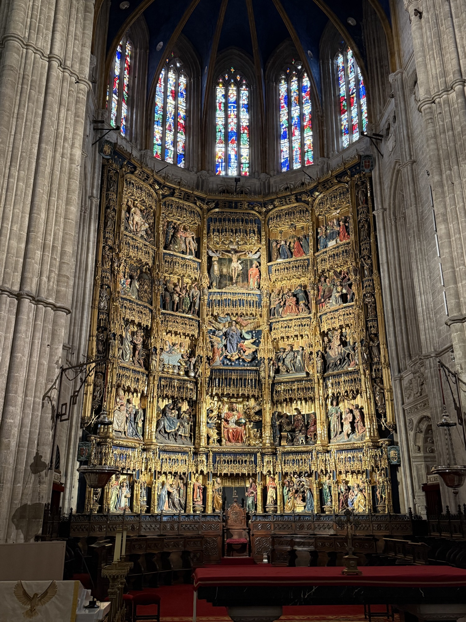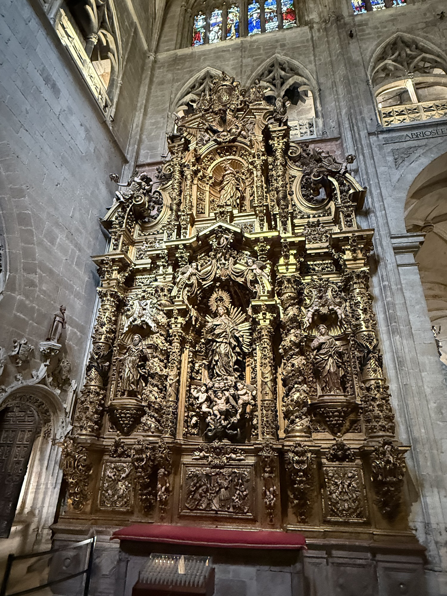 Schnell unsere Herberge aufgesucht und ab in die Stadt. Dort besuchten wir zuerst die Kathedrale, wo es den Pilgerstempel gab. Wie in Spanien üblich gab es reichlich verzierte goldene Altäre.