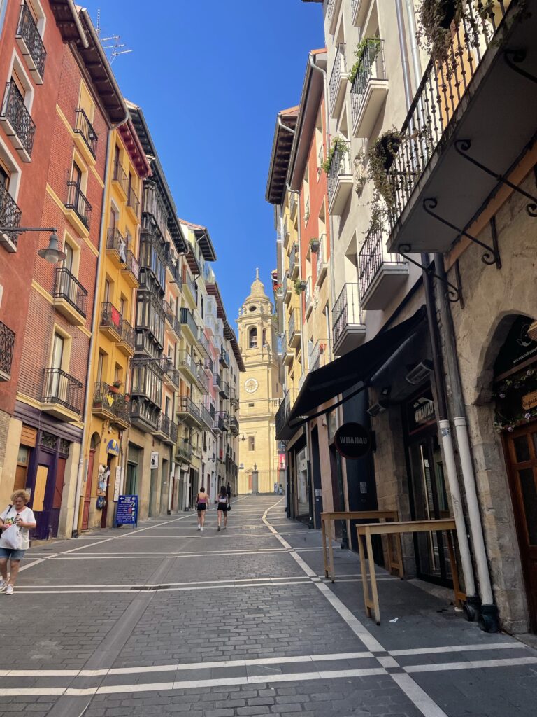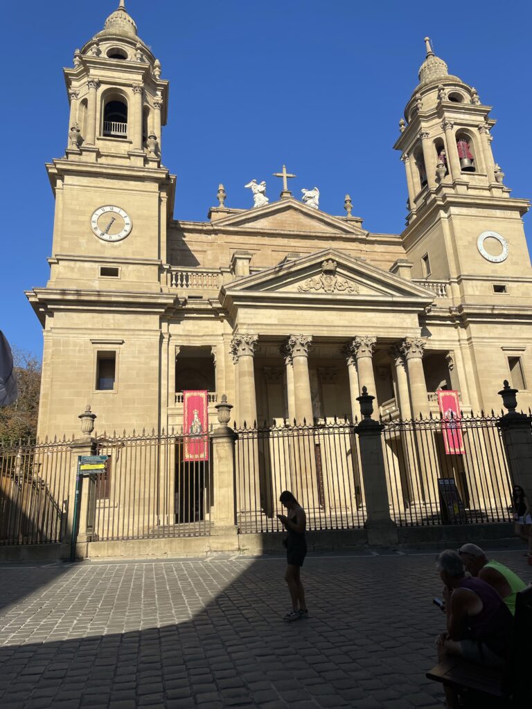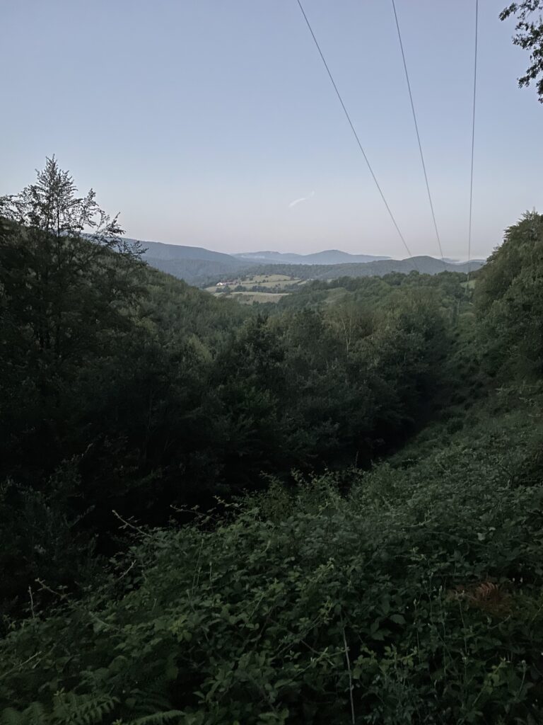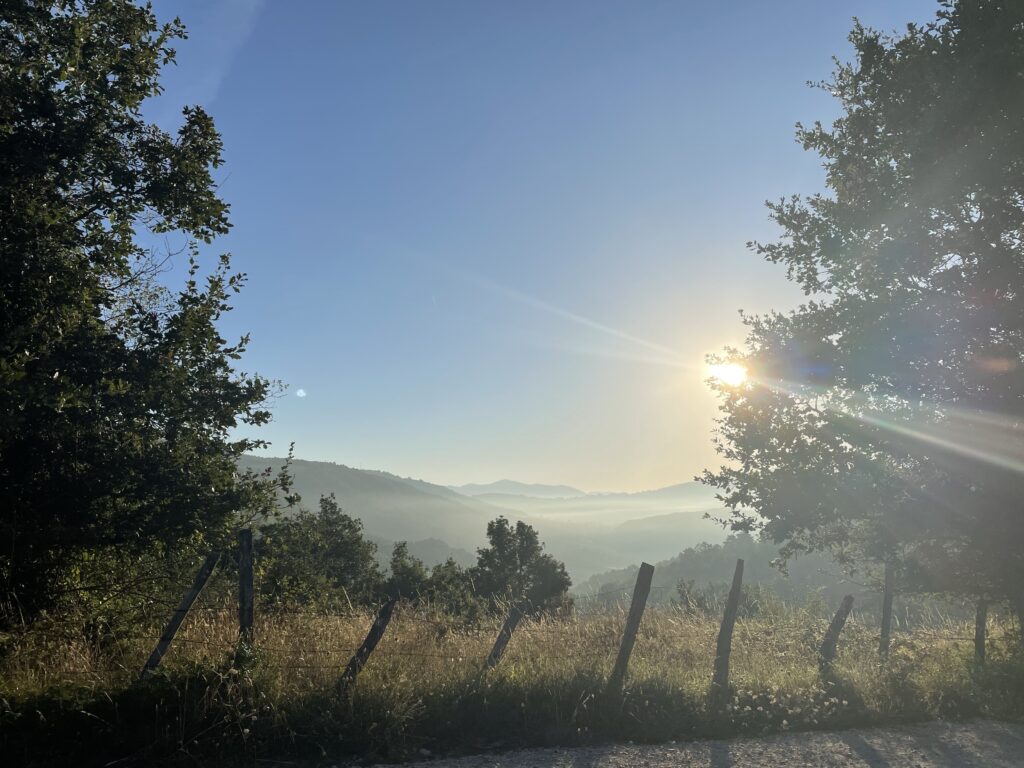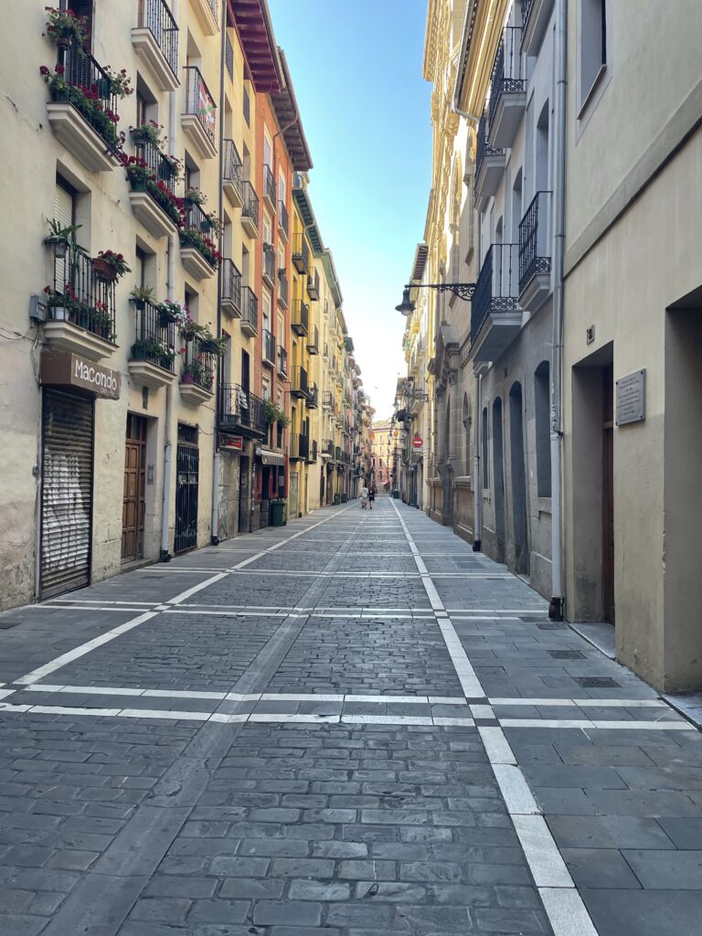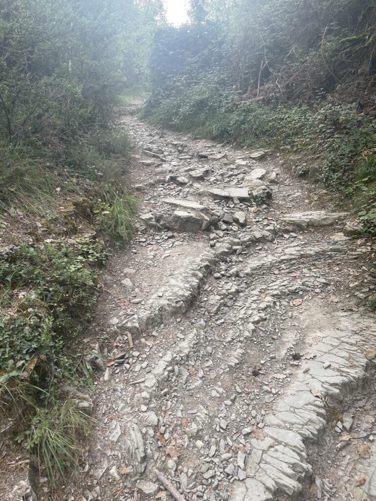 Endlich wurde es heller. Die nächste Ortschaft in Sicht. Leider gibt es keinen Kaffee somit keine Pause. Heute ist Sonntag, die schlafen alle und die Bürgersteige sind noch hochgeklappt. Also weiter. Der Weg führt weiter über Wälder, es geht konstant nach unten. Sehr steinig. Man muss mit voller konzentration da runter gehen. Meine Pause kam erst na4 Stunden marsch zustande, dafür war die ausgiebig. Mittags wäre die Etappe für heute geschafft, laufe weiter mit dem Ziel Pamplona.