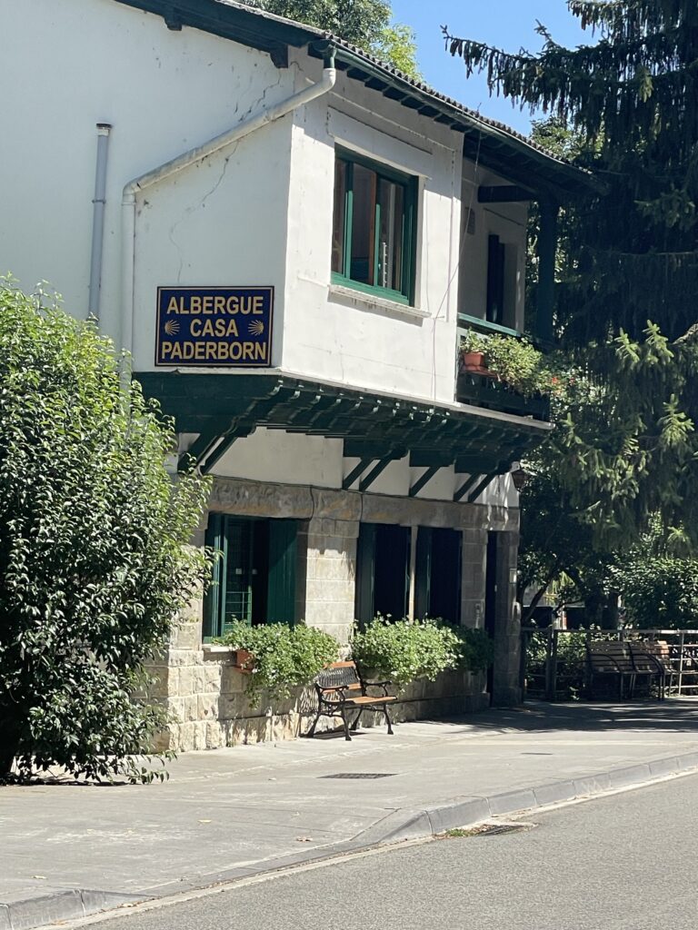 Puh, das war noch ein ganz fieses Stück. Ab der Pause verlief der Weg meistens in voller Sonne. Zudem habe ich heute keinen Pilger gesehen, die haben dich versteckt. Kurz noch mal Pause auf einer Terrasse am Fluss, dabei lief Fußball . Die Stimmung war sehr euphorisch- war ja schließlich schon 1:0 für die Spanierinnen. So Endspurt. War das anstrengend und schweißtreibend durch die aufgeheizten leeren Vorortsstrassen zu gehen. Abgekämpft nach 37 km in Villa Paderborn angekommen und herzlich auf deutsch von Helen aus Duisburg in Empfang genommen.